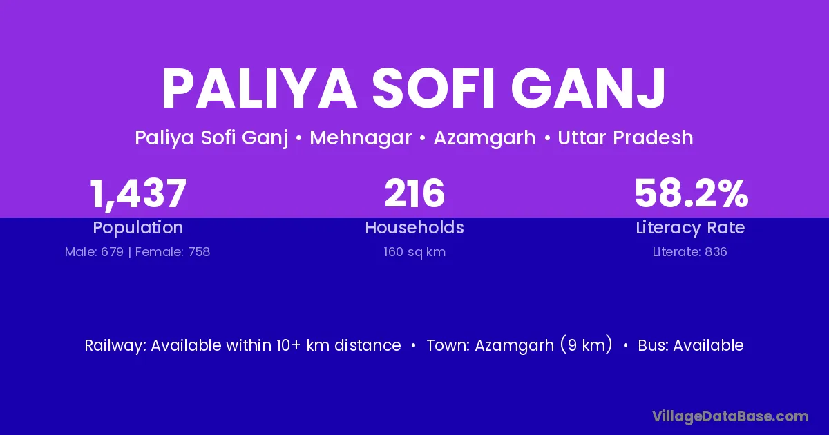 Paliya Sofi Ganj village has a total population of 1,437 people, of which 679 are males and 758 are females.