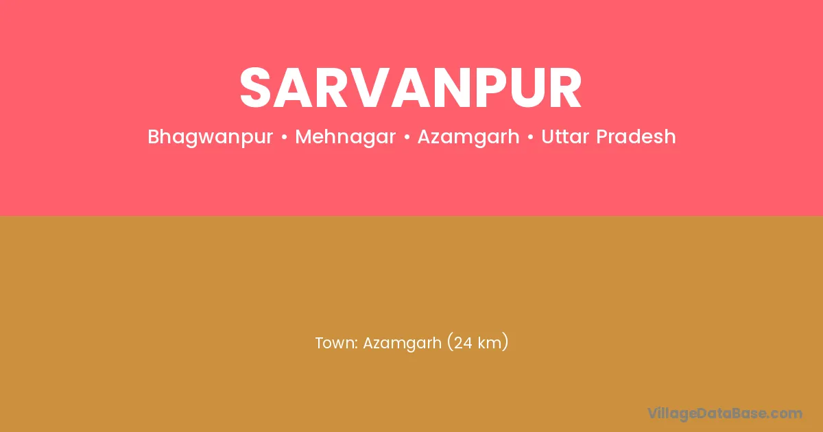 Azamgarh (24 km) is the nearest town to Sarvanpur village for major economic activities and is located approximately 24 km away.