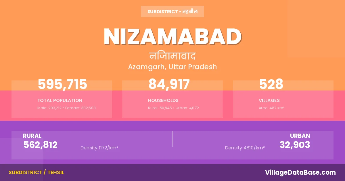 Nizamabad is a town and Tehsil in the Azamgarh district of the Uttar Pradesh. In India, a Tehsil is a subdivision of a district responsible for the administration and revenue collection of a specific area within the district. Tehsils play a crucial role in the local governance structure, contributing significantly to the development and administration of their communities.