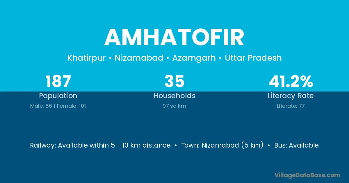 Nizamabad (5 km) is the nearest town to Amhatofir village for major economic activities and is located approximately 5 km away.