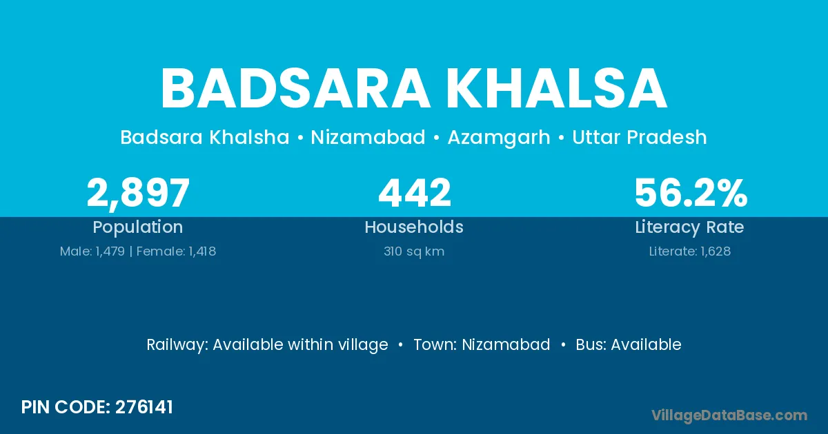Badsara Khalsa village has a total population of 2,897 people, of which 1,479 are males and 1,418 are females.