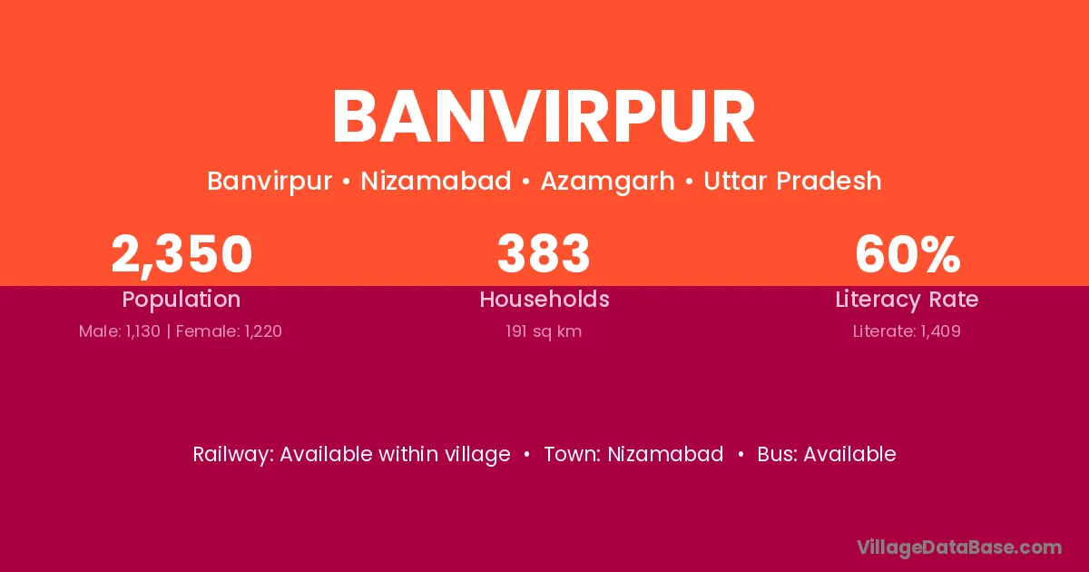 Banvirpur village has a total population of 2,350 people, of which 1,130 are males and 1,220 are females.