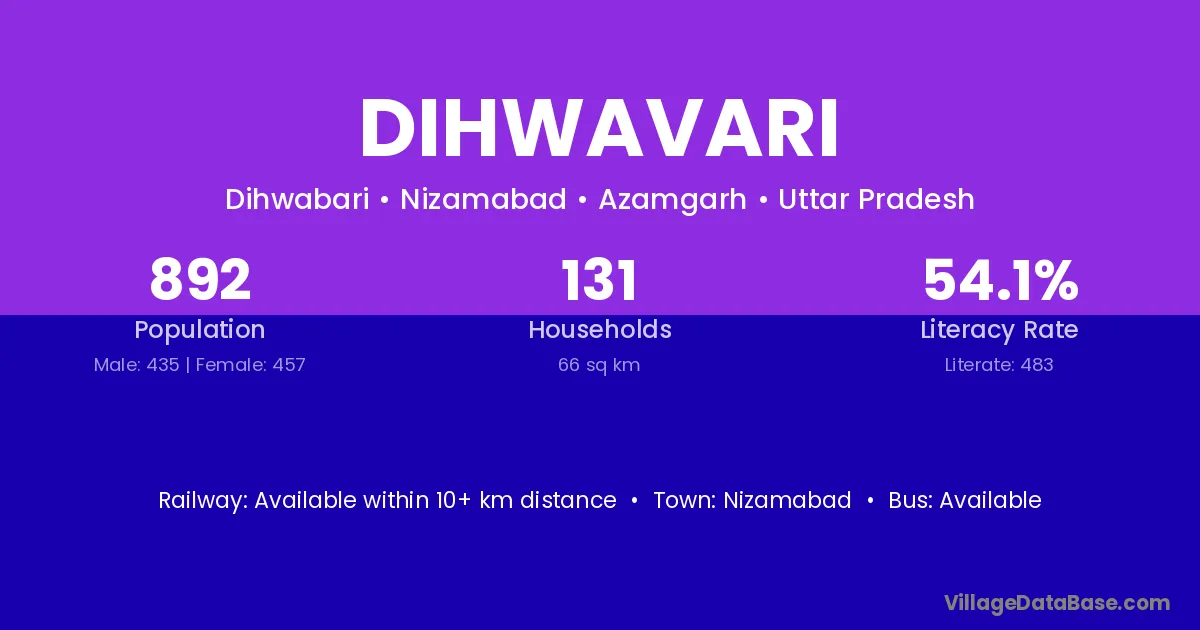 Nizamabad is the nearest town to Dihwavari village for major economic activities
