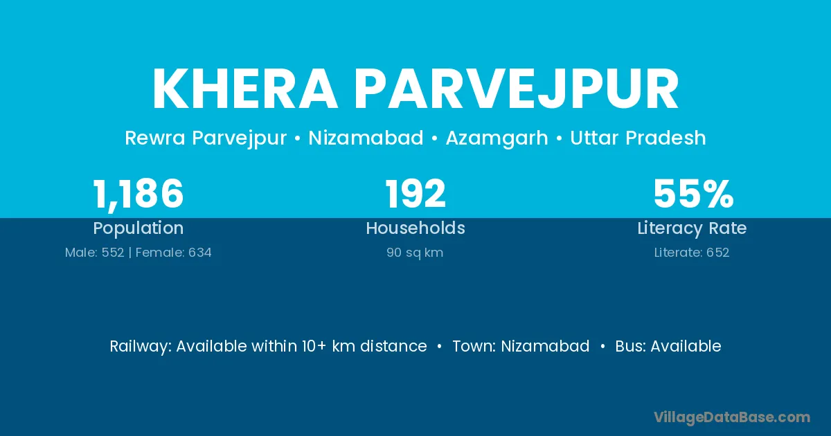 Khera Parvejpur village has a total population of 1,186 people, of which 552 are males and 634 are females.