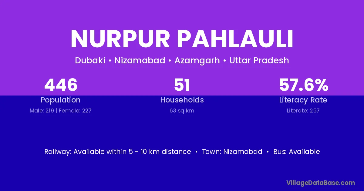 Nurpur Pahlauli village has a total population of 446 people, of which 219 are males and 227 are females.