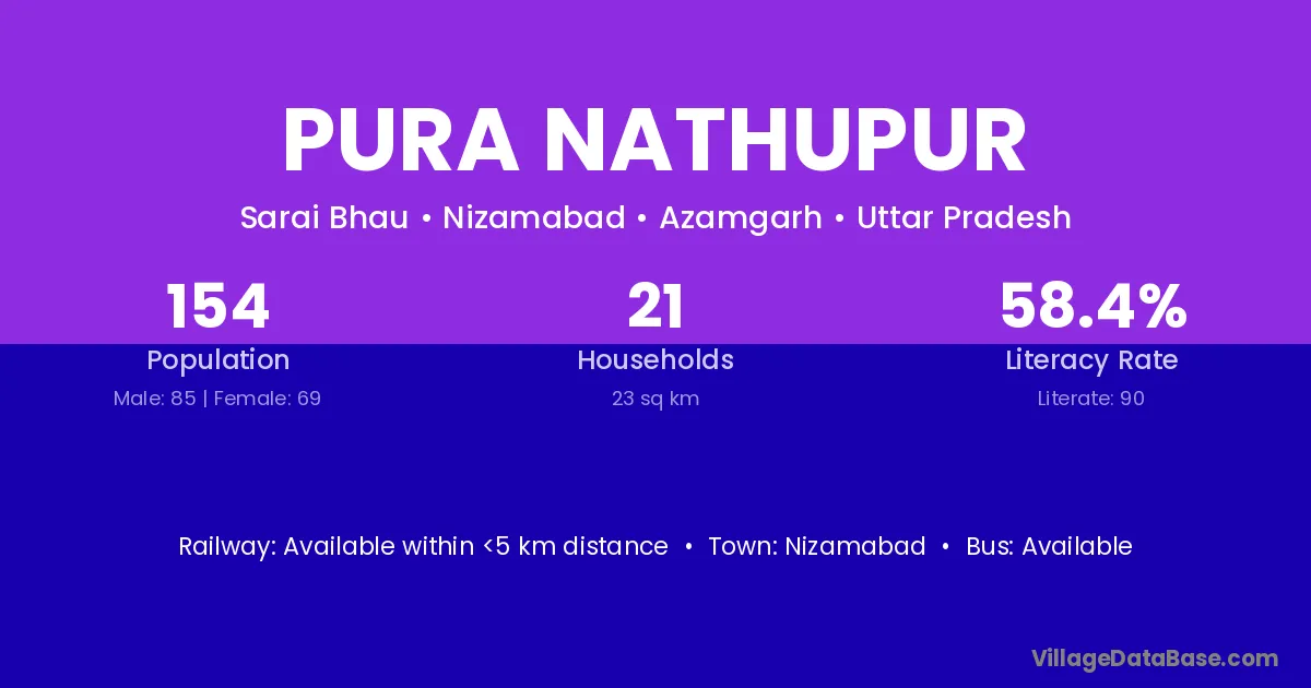Pura Nathupur village has a total population of 154 people, of which 85 are males and 69 are females.