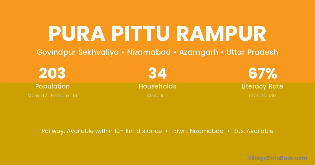 Pura Pittu Rampur village has a total population of 203 people, of which 87 are males and 116 are females.