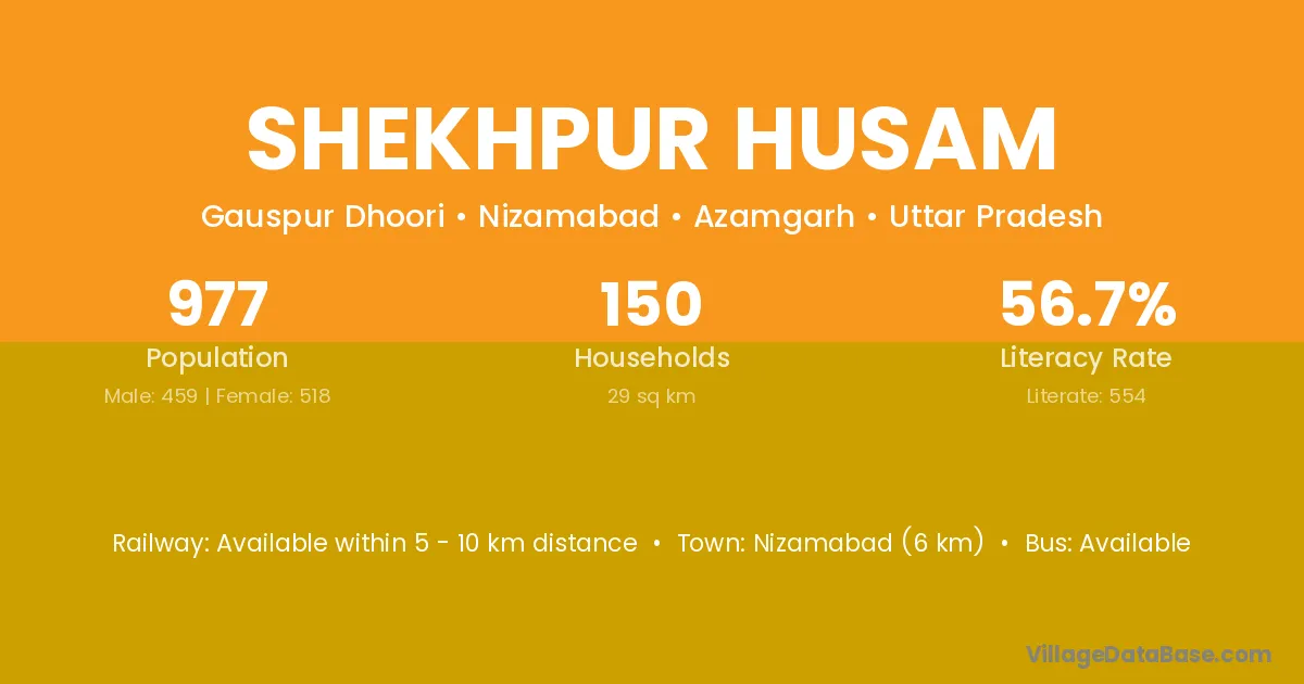 Shekhpur Husam village has a total population of 977 people, of which 459 are males and 518 are females.