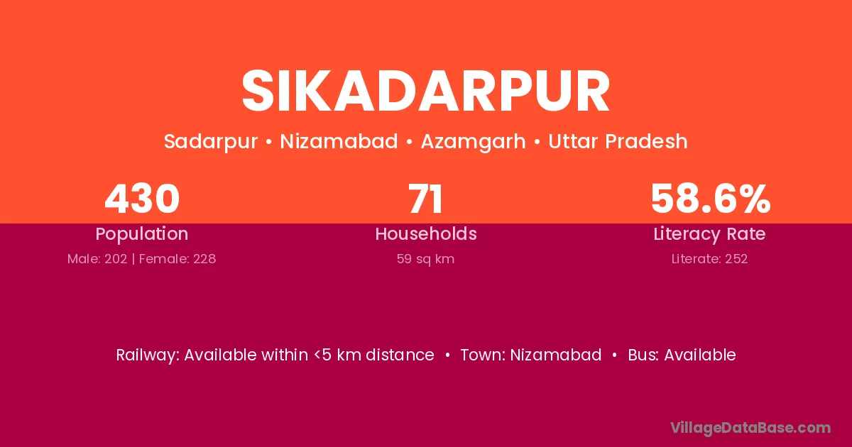Sikadarpur village has a total population of 430 people, of which 202 are males and 228 are females.