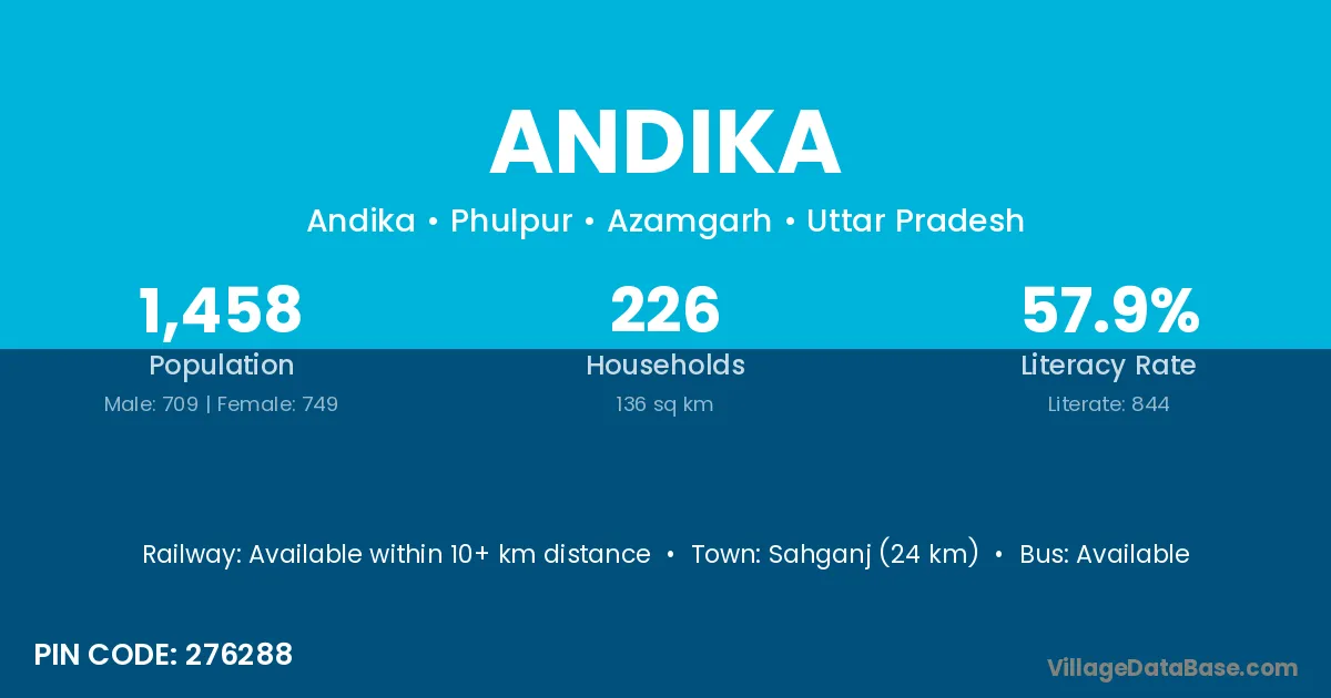 Sahganj (24 km) is the nearest town to Andika village for major economic activities and is located approximately 24 km away.