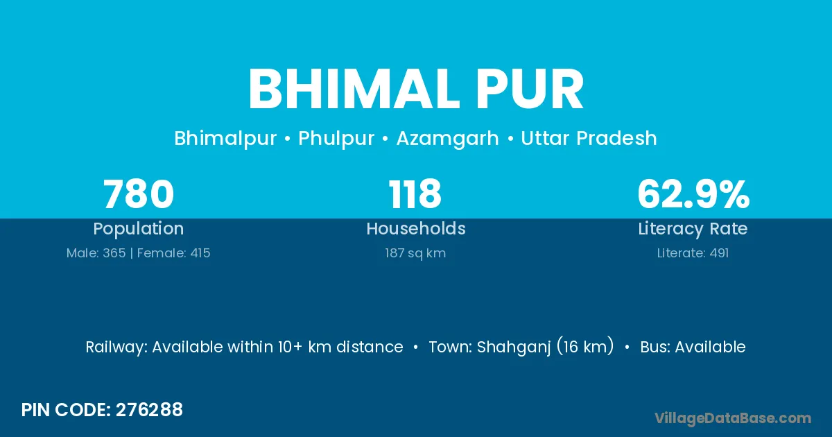 Shahganj (16 km) is the nearest town to Bhimal Pur village for major economic activities and is located approximately 16 km away.