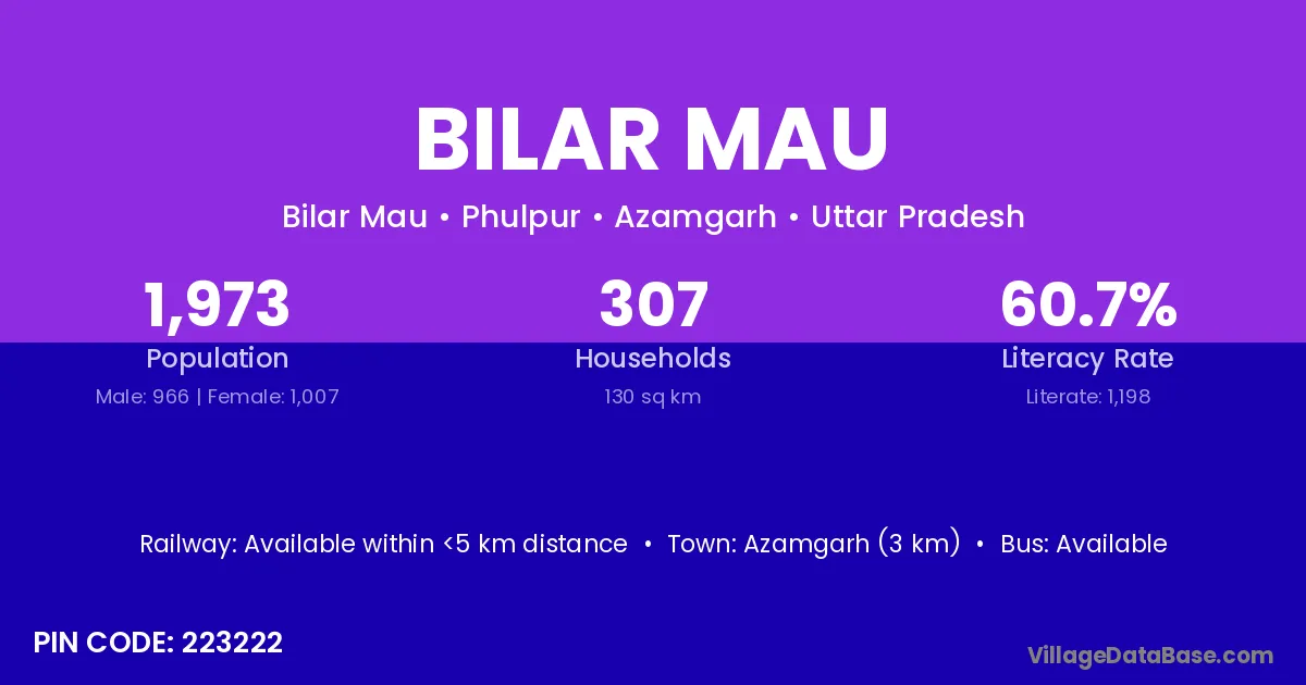 Azamgarh (3 km) is the nearest town to Bilar Mau village for major economic activities and is located approximately 3 km away.