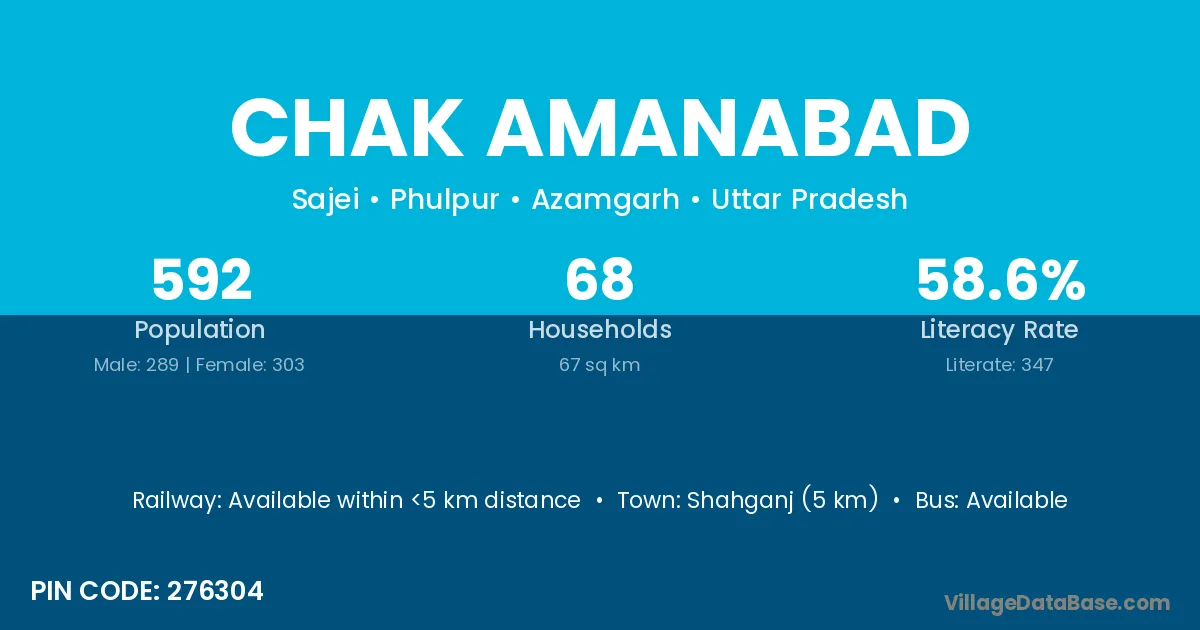 Shahganj (5 km) is the nearest town to Chak Amanabad village for major economic activities and is located approximately 5 km away.