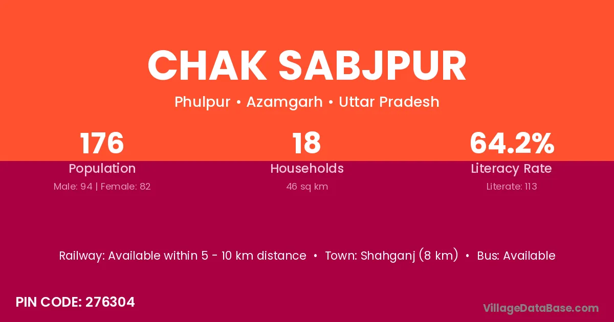 Shahganj (8 km) is the nearest town to Chak Sabjpur village for major economic activities and is located approximately 8 km away.