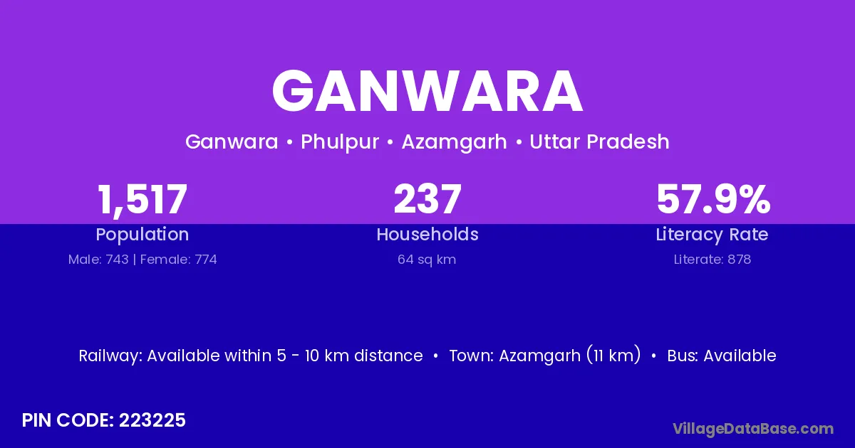 Azamgarh (11 km) is the nearest town to Ganwara village for major economic activities and is located approximately 11 km away.