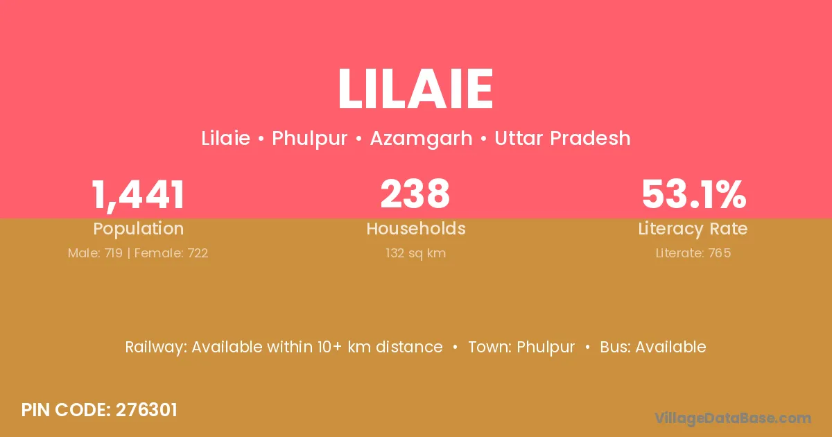 The literacy rate of Lilaie village is 53.09%. Male literacy stands at 65.65% and female literacy at 40.58%.