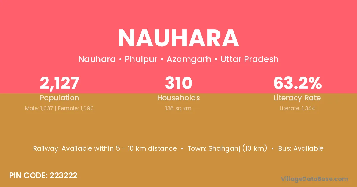 Shahganj (10 km) is the nearest town to Nauhara village for major economic activities and is located approximately 10 km away.