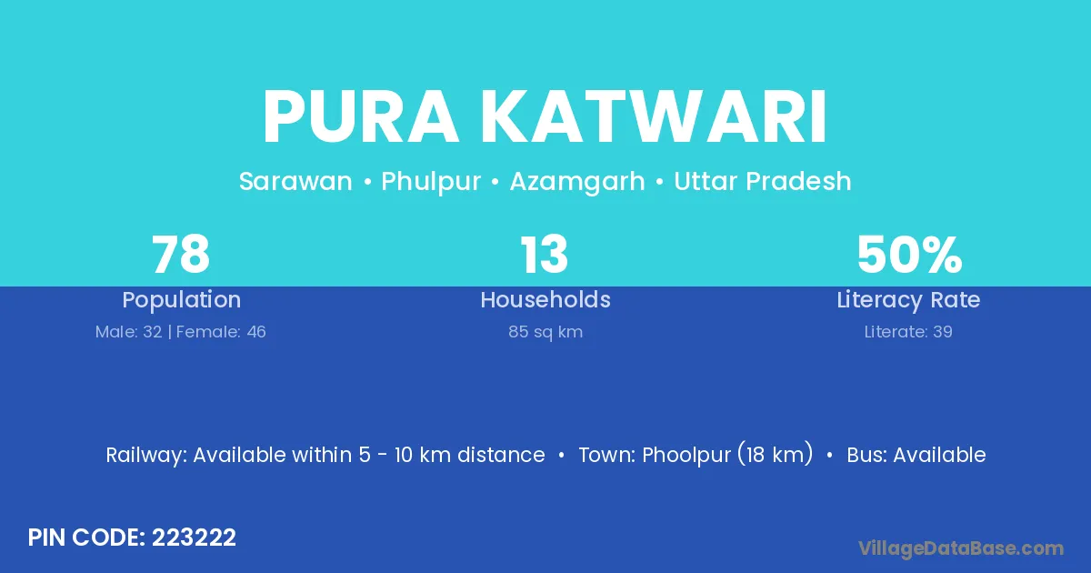 Phoolpur (18 km) is the nearest town to Pura Katwari village for major economic activities and is located approximately 18 km away.