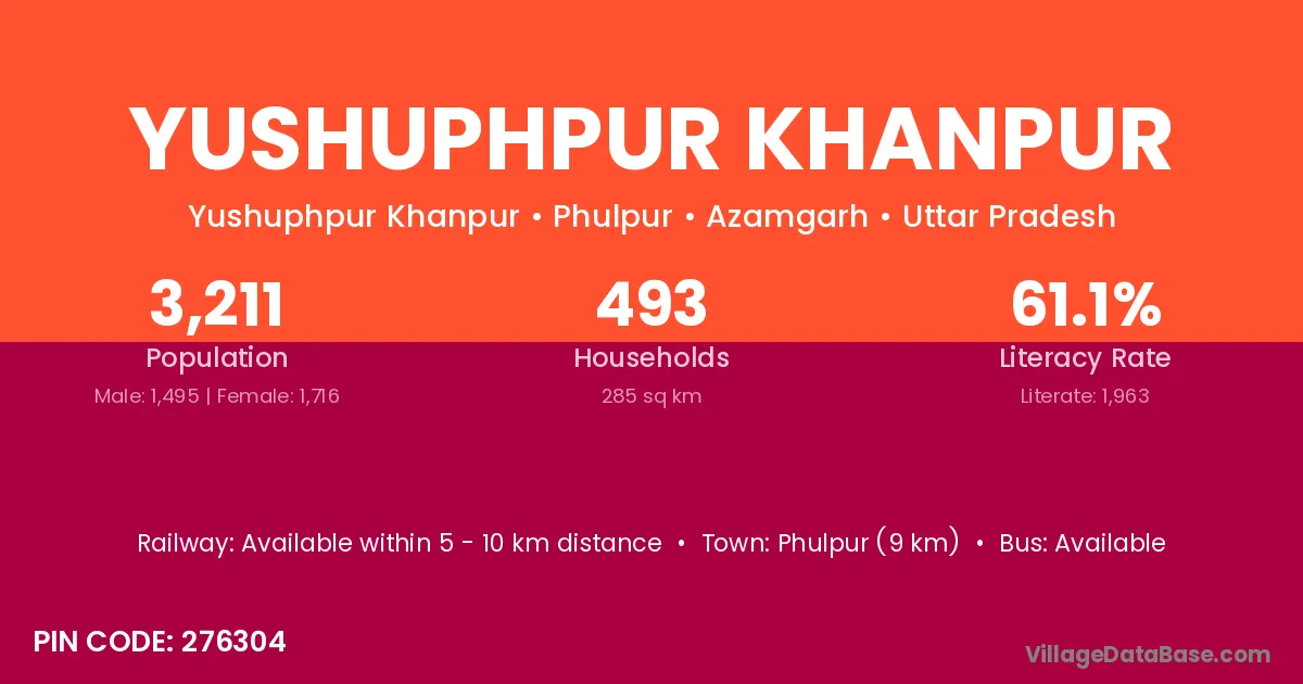 Phulpur (9 km) is the nearest town to Yushuphpur Khanpur village for major economic activities and is located approximately 9 km away.