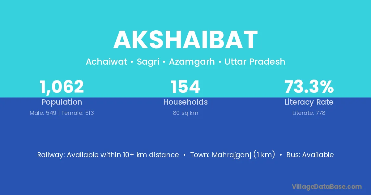 Mahrajganj (1 km) is the nearest town to Akshaibat village for major economic activities and is located approximately 1 km away.