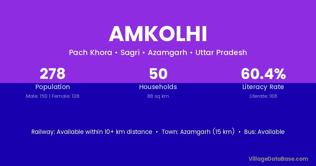 Azamgarh (15 km) is the nearest town to Amkolhi village for major economic activities and is located approximately 15 km away.
