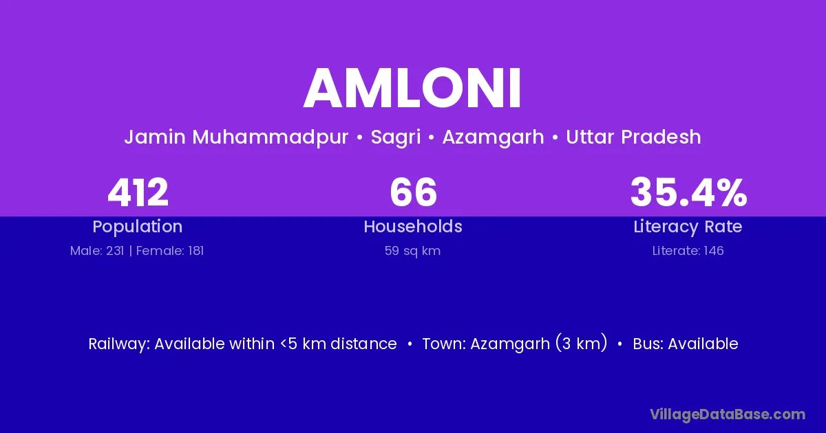 Azamgarh (3 km) is the nearest town to Amloni village for major economic activities and is located approximately 3 km away.