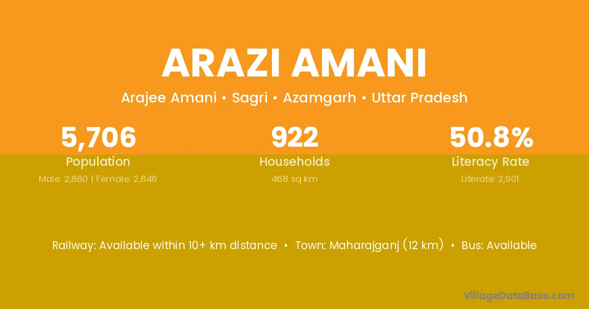 Maharajganj (12 km) is the nearest town to Arazi Amani village for major economic activities and is located approximately 12 km away.