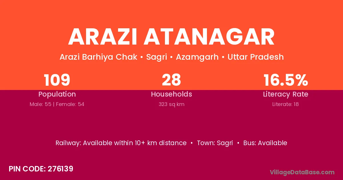 Arazi Atanagar village has a total population of 109 people, of which 55 are males and 54 are females.