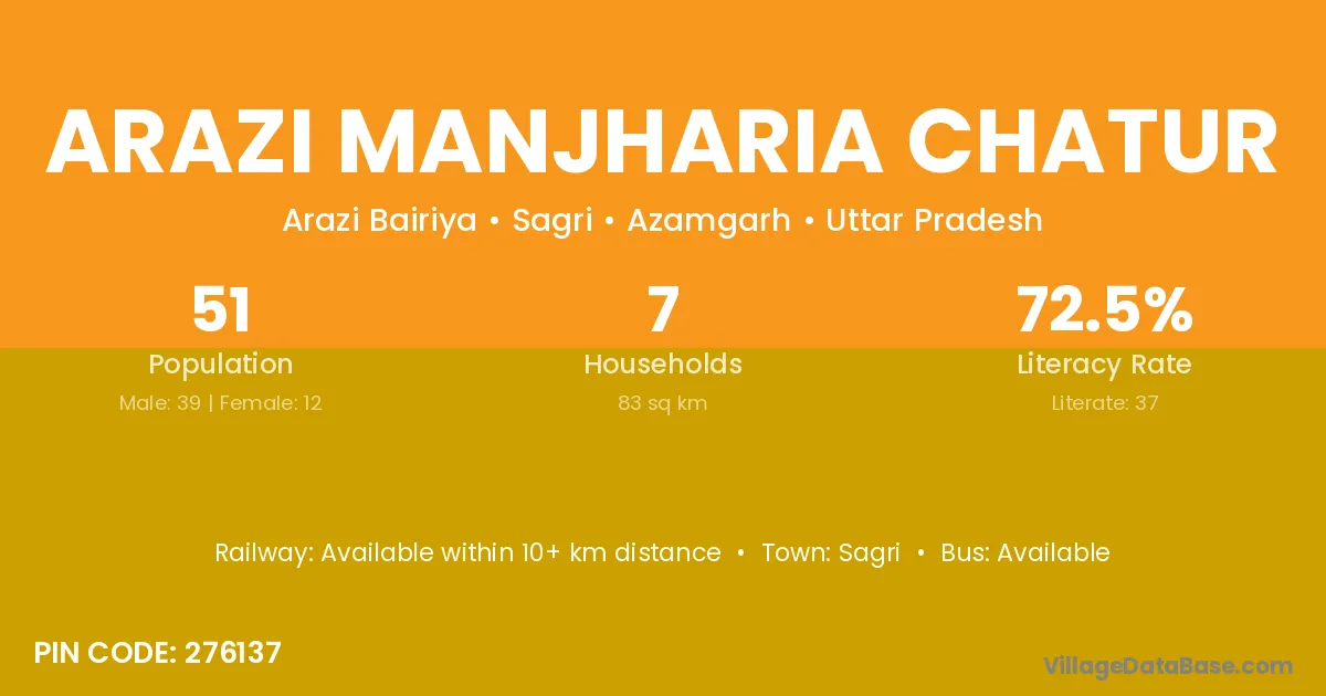Arazi Manjharia Chatur village has a total population of 51 people, of which 39 are males and 12 are females.
