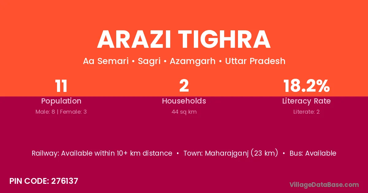 Maharajganj (23 km) is the nearest town to Arazi Tighra village for major economic activities and is located approximately 23 km away.