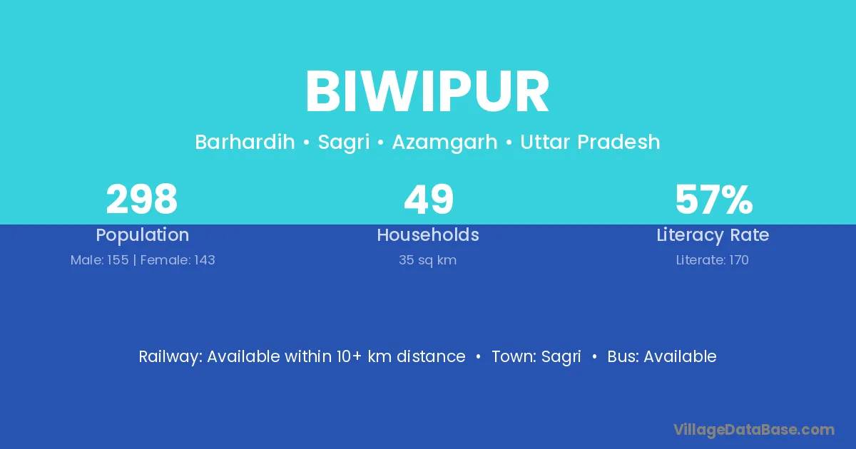 Biwipur village has a total population of 298 people, of which 155 are males and 143 are females.