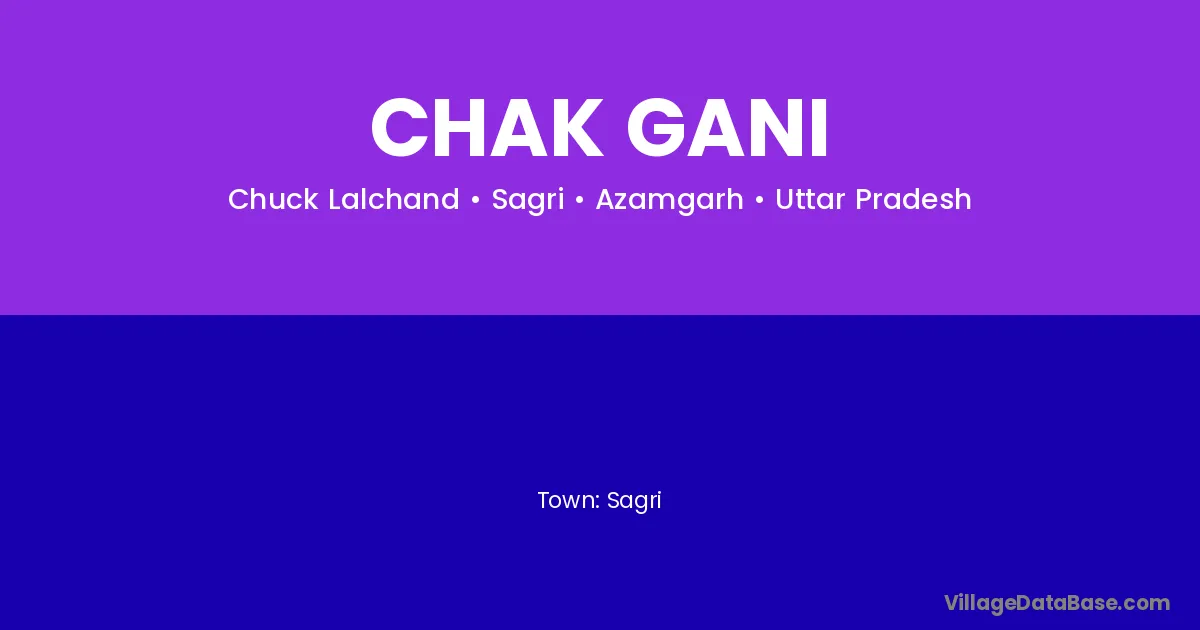 Chak Gani village is located in the Sagri Tehsil of the Azamgarh district in Uttar Pradesh .