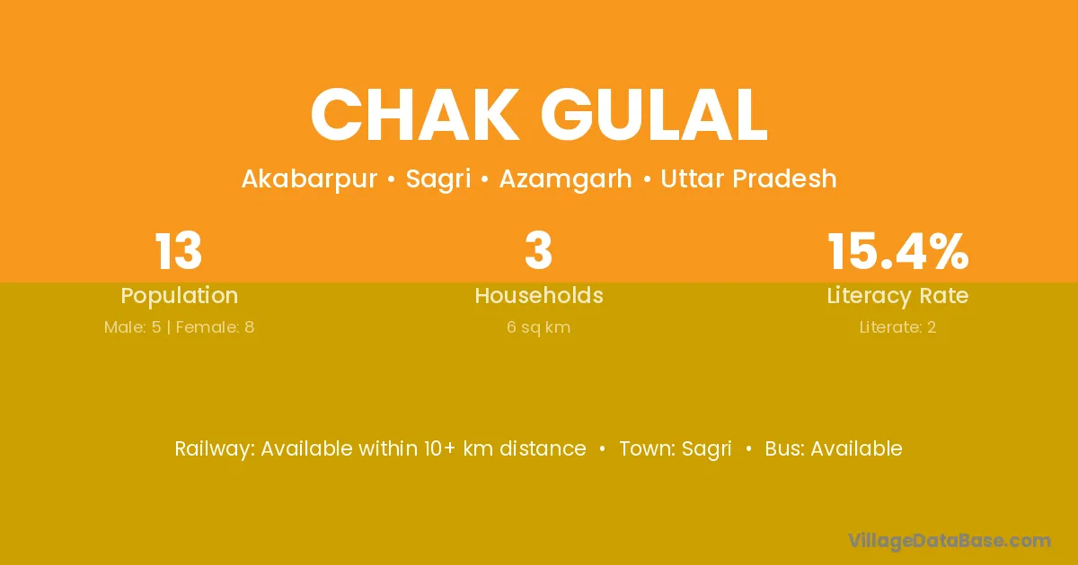 Chak Gulal village has a total population of 13 people, of which 5 are males and 8 are females.