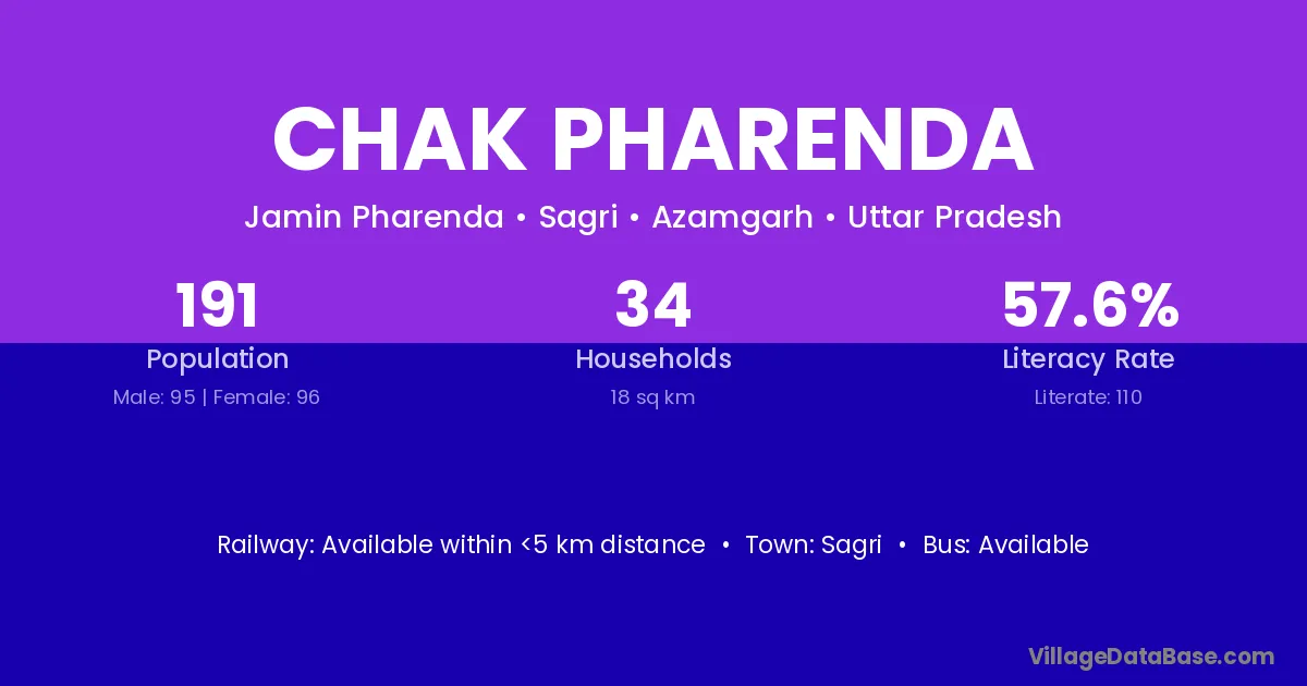 Chak Pharenda village has a total population of 191 people, of which 95 are males and 96 are females.