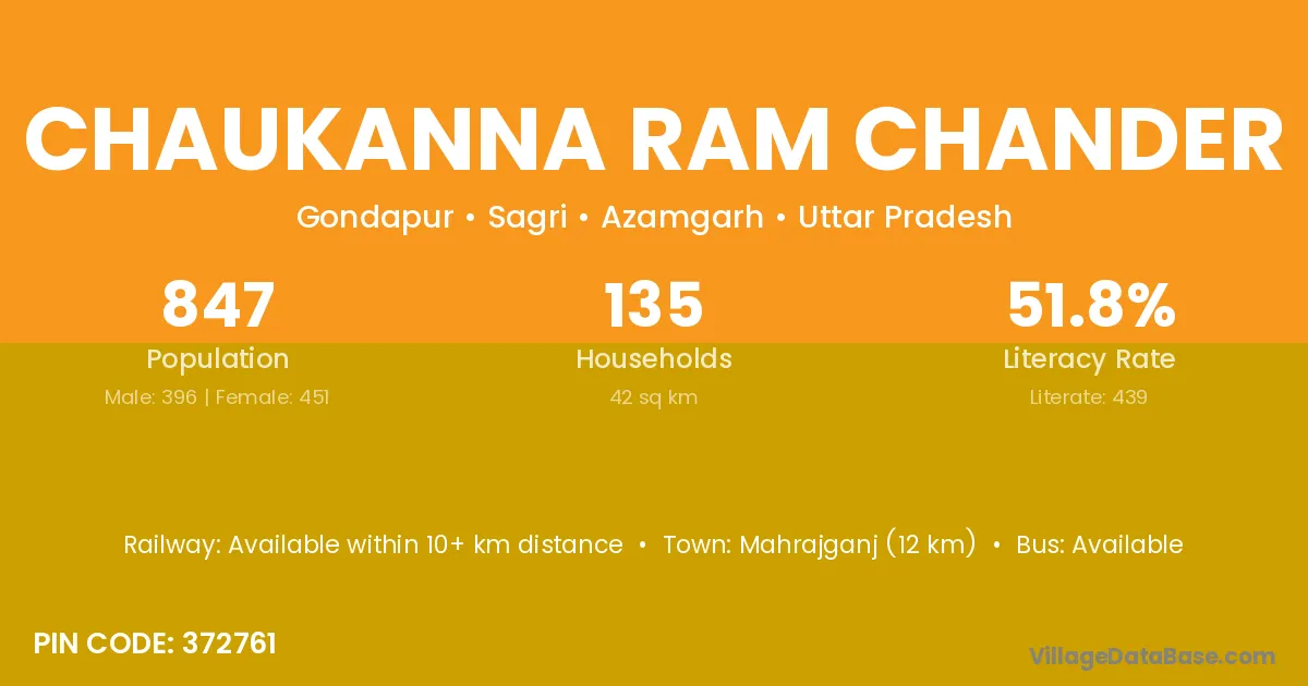 Mahrajganj (12 km) is the nearest town to Chaukanna Ram Chander village for major economic activities and is located approximately 12 km away.