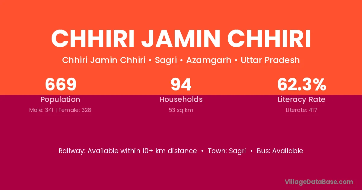 Chhiri Jamin Chhiri village has a total population of 669 people, of which 341 are males and 328 are females.
