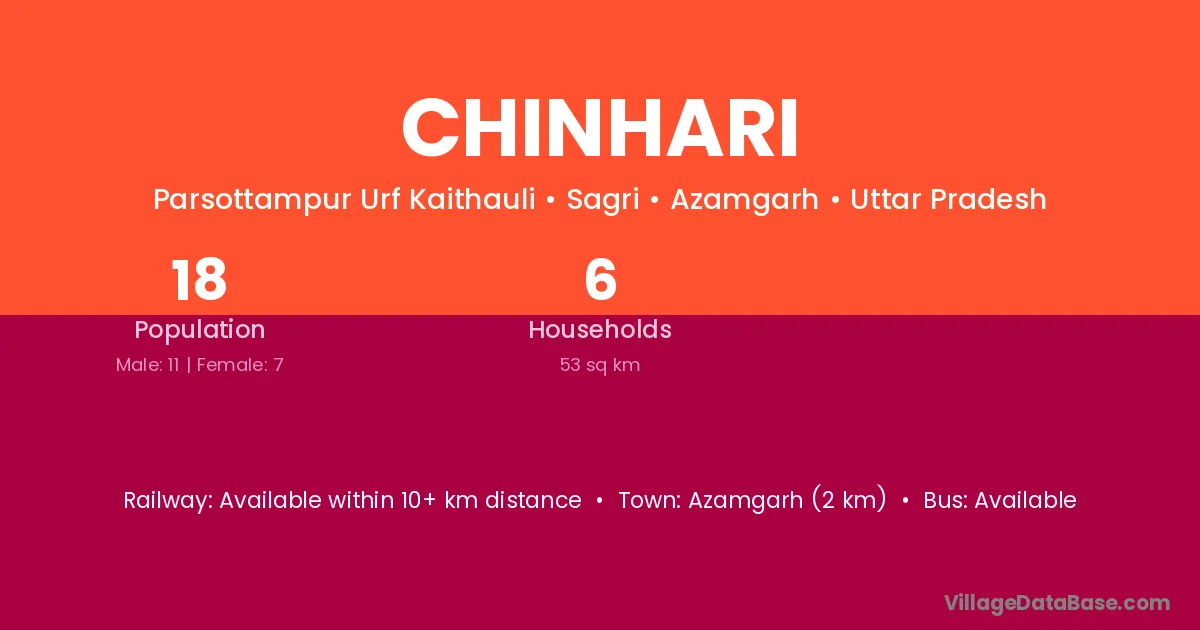 Azamgarh (2 km) is the nearest town to Chinhari village for major economic activities and is located approximately 2 km away.