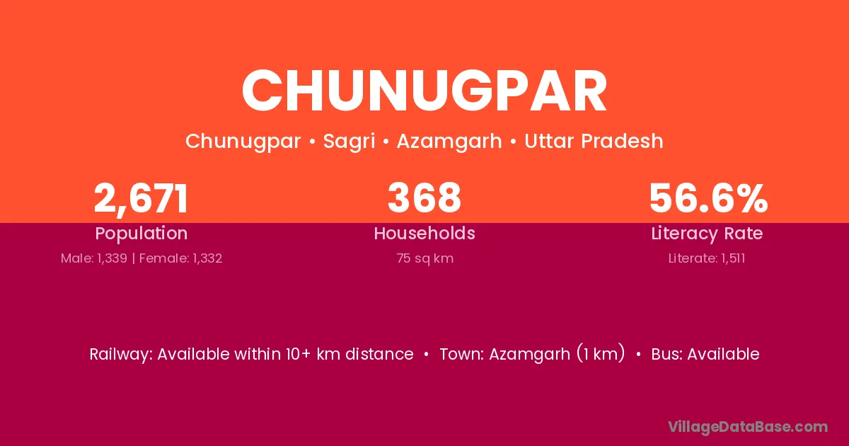 Azamgarh (1 km) is the nearest town to Chunugpar village for major economic activities and is located approximately 1 km away.