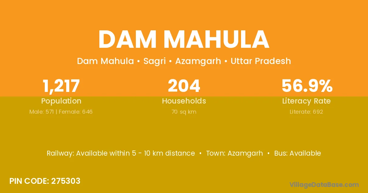 Azamgarh is the nearest town to Dam Mahula village for major economic activities