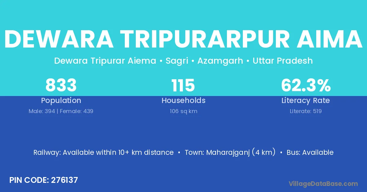 Maharajganj (4 km) is the nearest town to Dewara Tripurarpur Aima village for major economic activities and is located approximately 4 km away.