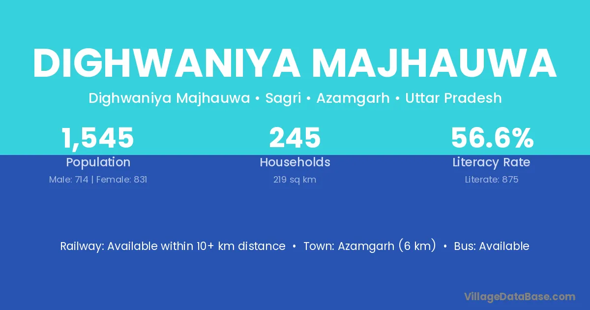 Azamgarh (6 km) is the nearest town to Dighwaniya Majhauwa village for major economic activities and is located approximately 6 km away.