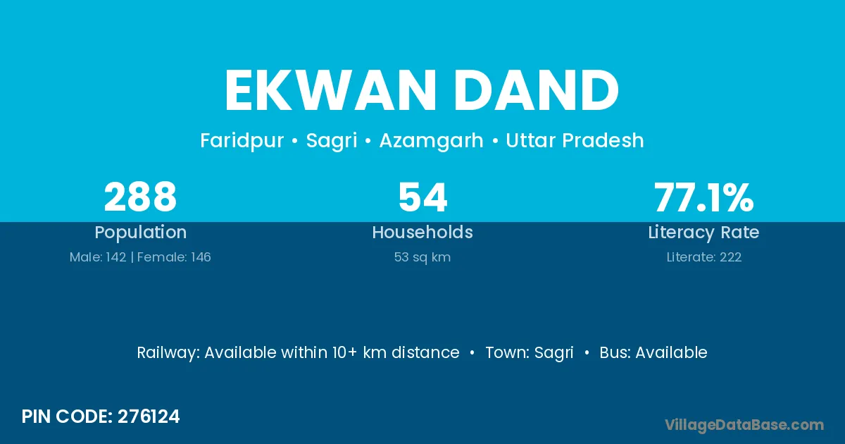 Ekwan Dand village has a total population of 288 people, of which 142 are males and 146 are females.