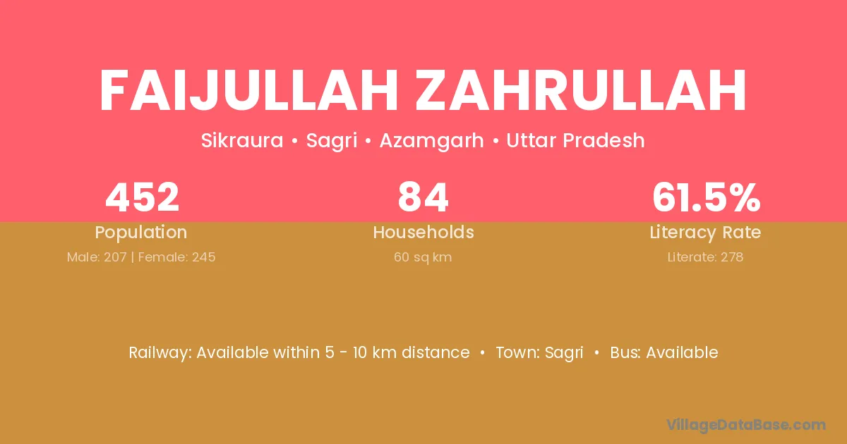 Faijullah Zahrullah village is located in the Sagri Tehsil of the Azamgarh district in Uttar Pradesh .