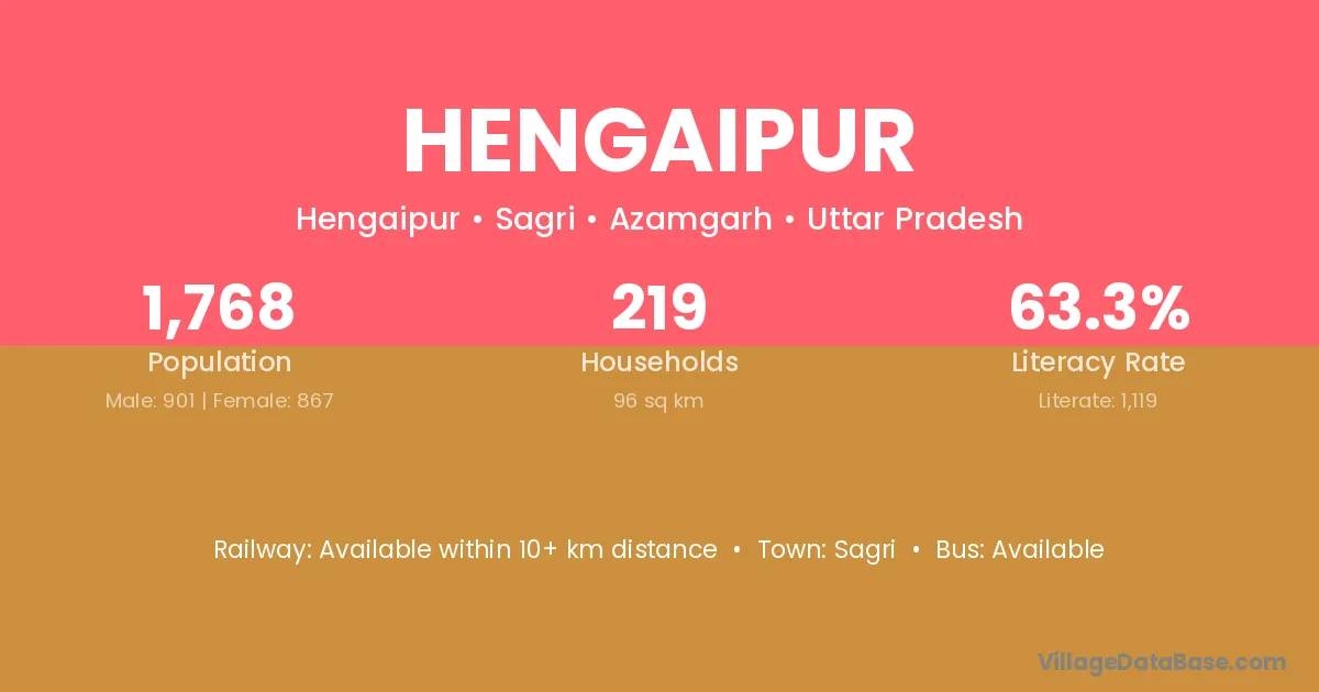 Hengaipur village has a total population of 1,768 people, of which 901 are males and 867 are females.