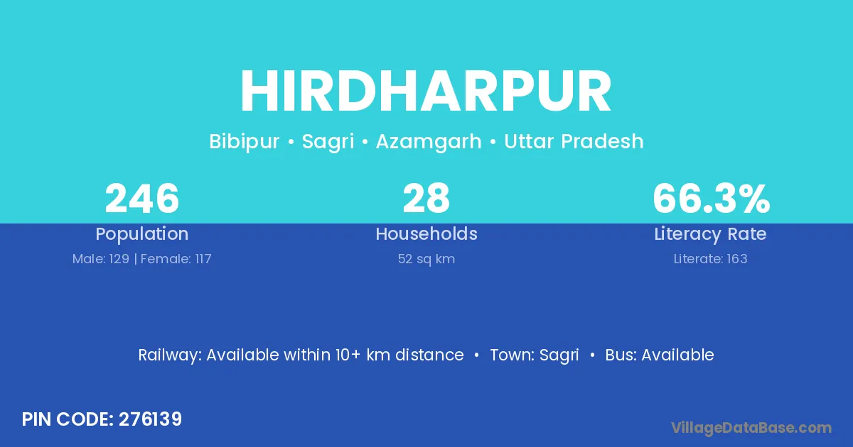 Hirdharpur village has a total population of 246 people, of which 129 are males and 117 are females.