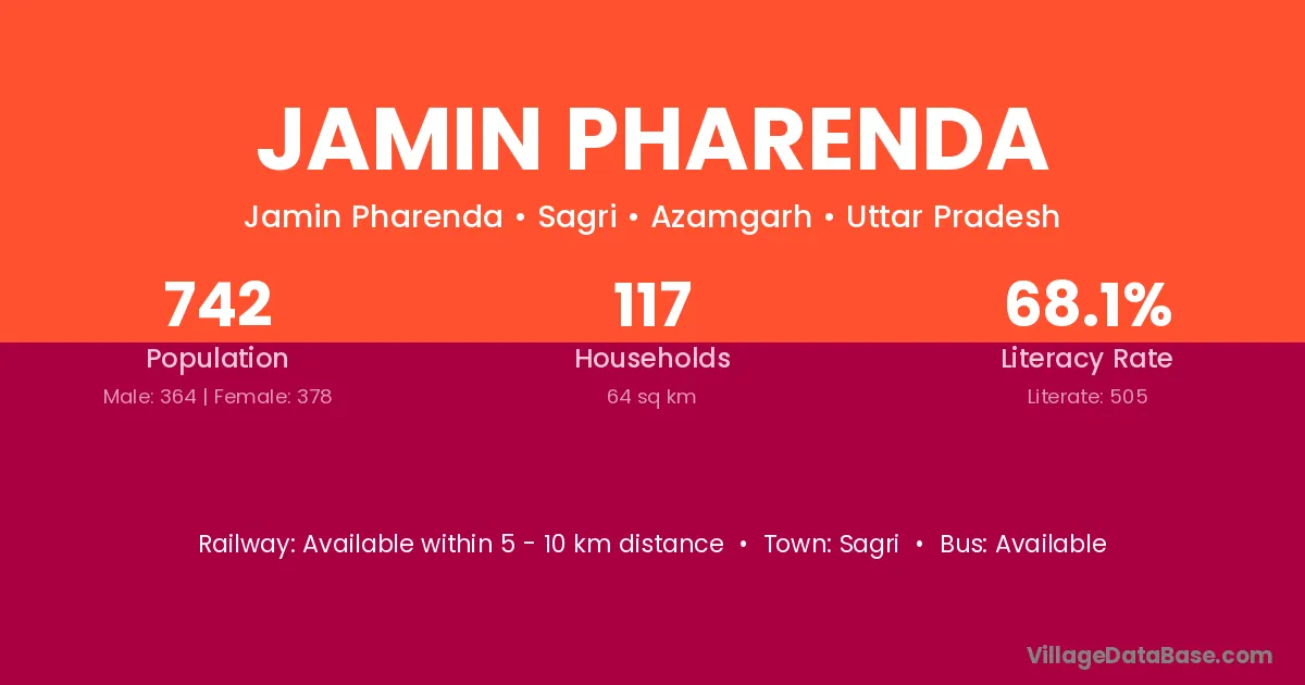 Jamin Pharenda village has a total population of 742 people, of which 364 are males and 378 are females.