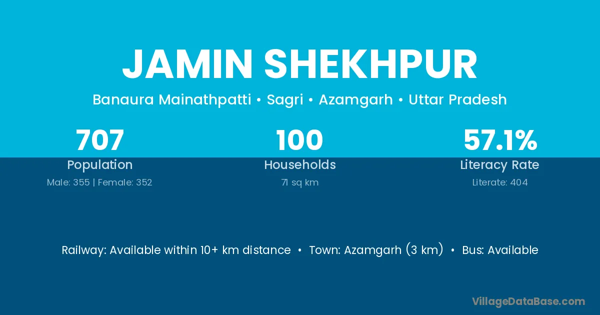 Azamgarh (3 km) is the nearest town to Jamin Shekhpur village for major economic activities and is located approximately 3 km away.