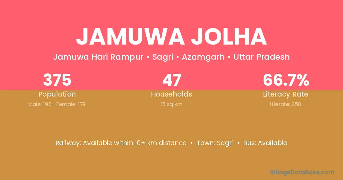 Jamuwa Jolha village has a total population of 375 people, of which 196 are males and 179 are females.