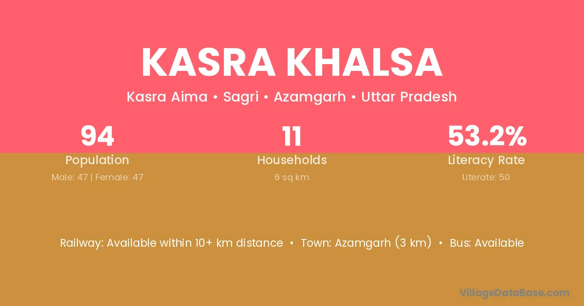 Azamgarh (3 km) is the nearest town to Kasra Khalsa village for major economic activities and is located approximately 3 km away.