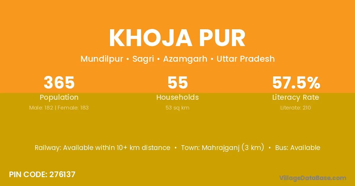 Mahrajganj (3 km) is the nearest town to Khoja Pur village for major economic activities and is located approximately 3 km away.